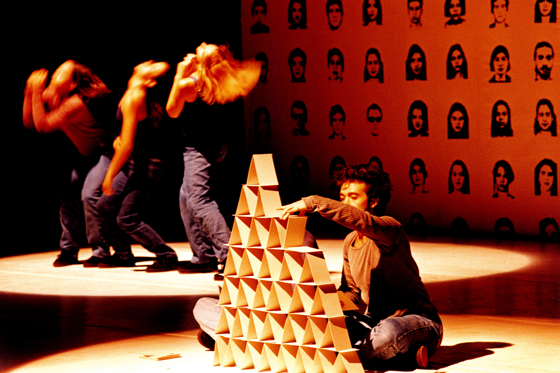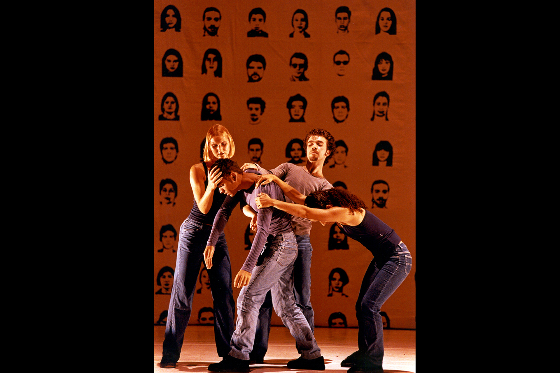 Os conceitos de identidade e solidão são trabalhados em solos que investem em abstrações de gestos cotidianos enquanto o comportamento da sociedade é explorado nas relações com o espaço e entre os intérpretes por meio de toques, apoios e tensões espaciais.