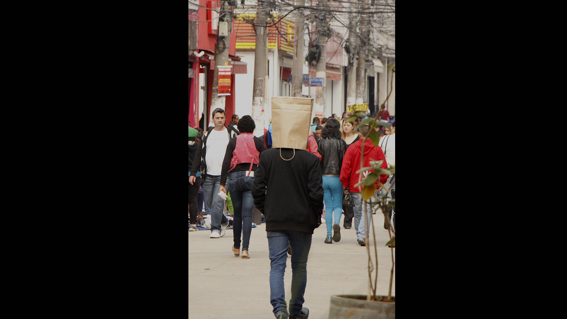 As sacolas são distribuídas durante a performance. As pessoas que estão passando, ambulantes, lojistas, consumidores e diferentes habitantes da cidade que aceitam a sacola, se apropriam dela de várias maneiras, entram no jogo, promovendo inúmeras relações entre pessoas e ambiente. Os performers se multiplicam. A experiência com a cidade ganha contorno inesperado, quase surreal. Tem-se a sensação de estar dentro de um sonho.
